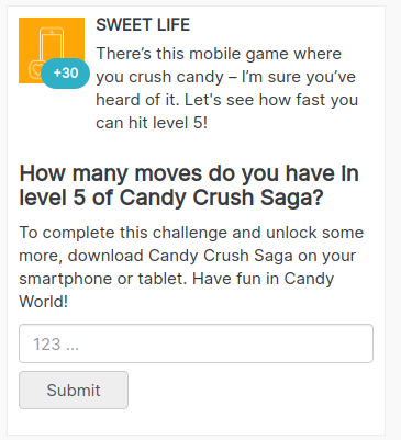 Example: The company creates "What is the name of a character who assists signed up mobile app users?". A person should sign up to find the answer.