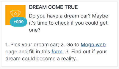 A common purpose companies use Aimera is to motivate people do small steps towards the business goals. Just some examples: